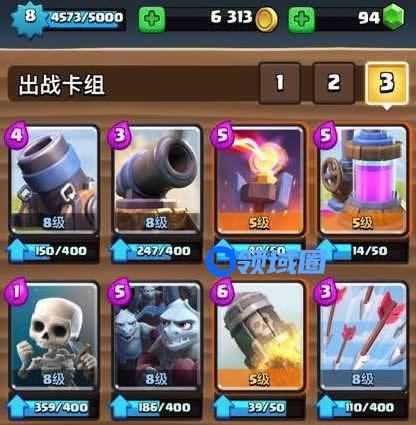 加农炮是防守核心卡牌,遇到野猪就要靠他来溜,解解小生物或者武神小皮卡王子效果也不错。
