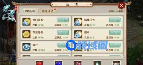 主要经验来源:【修行任务】【除暴任务】【白帮忙】【帮派任务】