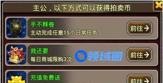 同时,拍卖行交易需使用拍卖币,拍卖币需通过以下方式获得