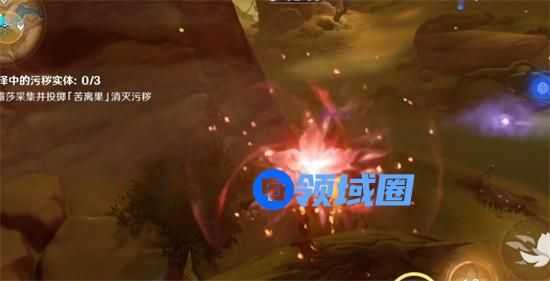 1、玩家需要利用斯露莎采集并投掷苦离果,消灭沼泽的污秽实体,首先使用一下花技能采集苦离果;