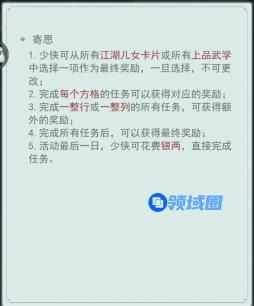 江湖悠悠中秋活动寄思任务怎么完成?江湖悠悠这款游戏在最近中秋节快要到来之际开启了一个活动,基本所有的手游都会在一些比较重大的节日开放节日活动,在这种活动种玩家一般都可以得到比较丰厚的奖励,有的是通过做任务然后兑换奖励,有的是回答问题来获得奖励。在江湖悠悠中玩家要参加的中秋活动是九月揽天,在这个活动中有一个任务是需要玩家一定要完成的,这个任务是寄思任务,很多玩家都不知道这个任务要怎么做。下面小编整理了这个任务的攻略,现在分享给大家,有需要的小伙伴可以看一下哦。