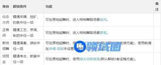 进阶身份有 【仪态大师】、【正骨师】、【教坊领舞】、【戏班主】 这四种。