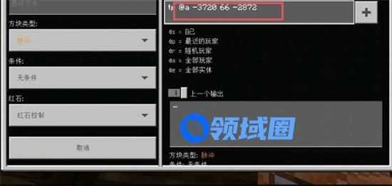 2.右键打开命令方块,在下图所示的指令框中输入tp@a指令,然后后面输你想生成村庄的位置坐标,输完后点右侧 号运行。