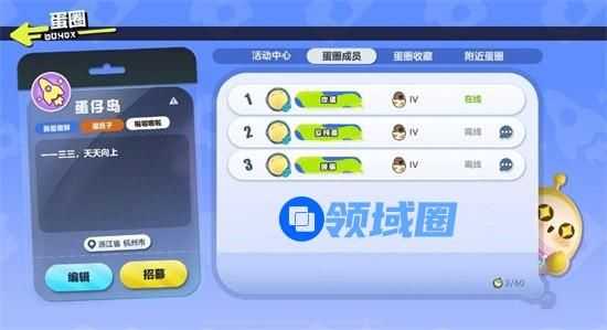 - 附近蛋圈:串门啦串门啦,看看隔壁的蛋玩什么?使用附近蛋圈功能即可查看其他蛋圈的成员与蛋圈收藏,点击即可进入游玩哦,如果圈友们收藏的地图都打卡完毕,不如就来这里逛逛吧!