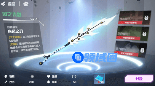 在专属武器升级的过程中,达到10级、20级、30级时,则需要消耗一定的对应参赛者信物来完成等级上限的突破。