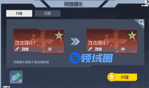 在详情界面点击词缀右侧,即可对该词缀进行升级或改造。词缀升级需要消耗【元力强化剂】,随着词缀的强化等级越高,升级词缀所消耗的【元力强化剂】数量就越多。