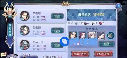 演武幻境的开放条件是玩家通关副本2-7。玩家第一次进入其中,默认排名都会在一万名之后,想要赢得更高排名,则需要挑战位于自己排名前方的对手。 在搜索对手的时候,系统会自动匹配三个不同区间、且排名在自己前列的玩家。玩家可以任意选择一名玩家进行挑战,胜则直接取而代之。若无法战胜三名随机匹配出的对手,便可以使用每天拥有5次免费机会的“换一批”,来刷新对战列表。