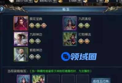 玩家可在秘笈信息标签页下装备心法秘笈(最多装载5本秘笈)。通过玩家所携带秘笈拥有五行元素的个数,计算得出最多的一种五行属性作为玩家的主属性。