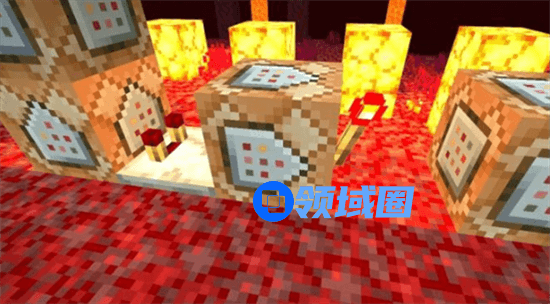 然后在下图所示位置中,摆放一个红石比较器和一个红石火把,红石火把要贴在中间命令方块的右侧面上。