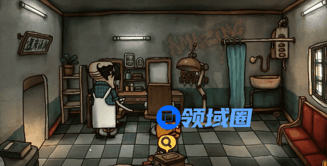 在屠宰场进门的地方有个解密需要完成,明信片下面的图案就是密码,然后我们用剪刀把里面被苍蝇包围的肉拿到手,把肉丢给门口的狗狗,他会把鼓槌给我们,拿走。