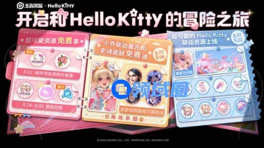 【海岛乐园】活动将在8月22日逐区开放,玩家通过完成任务获得乐园币,再使用乐园币刷新奖励,可获得小乔-缤纷独角兽的Hello Kitty联动星元和一款永久史诗皮肤。