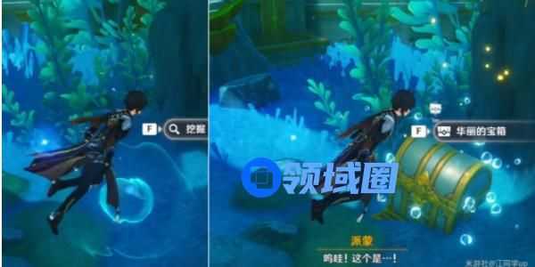 2、我们来到水族馆外与膨膨兽对话,对话结束后返回水族馆内部根据指示看见一个点击挖掘可以获得一个华丽的宝箱。