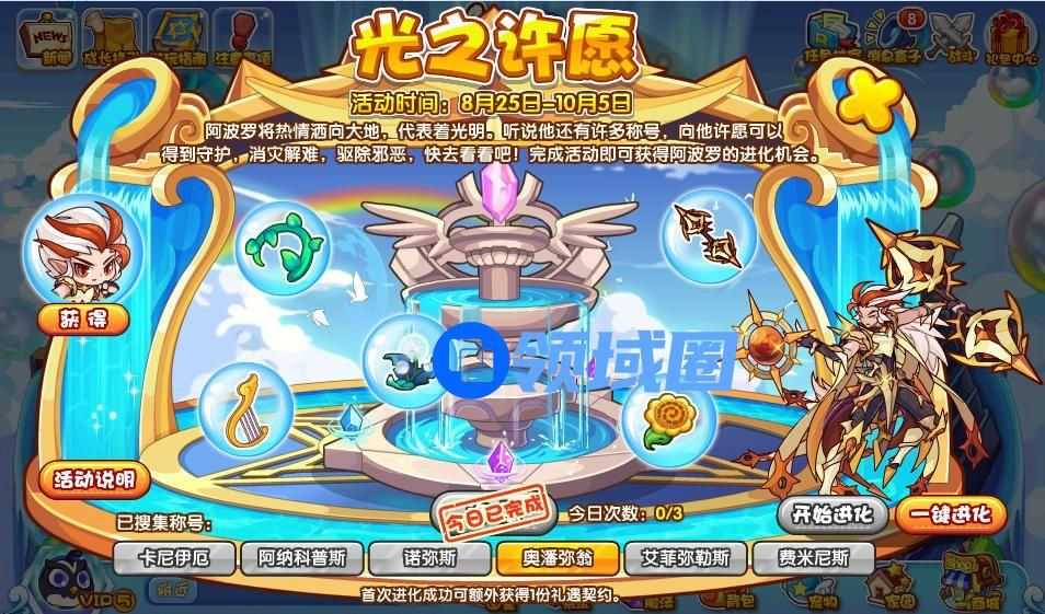 洛克王国光之许愿活动怎么玩?在活动中大家要收集很多称号,完成称号的收集即可得到阿波罗的进化机会,想要收集称号需要玩家们收集材料,了解具体的配方之后才可以得到称号,具体的可以多看看游戏鸟小编分享在下面的光之许愿活动详情。
