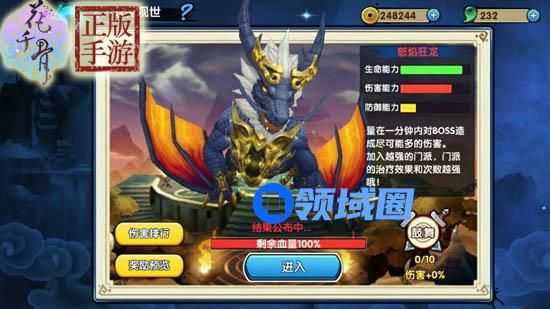 3、在与世界BOSS战斗过程当中,除了要搭配一些高伤害的灵宠外,还要灵活运用灵宠的技能,做到伤害最大化。比如白子画灵宠的心系苍生技能,在对战 BOSS的时候,就可以使用这个技能,这个技能可以在一定时间之内使自身周边一定范围内的友方单位不受伤害。这样便能够为角色争取到更多的时间,对 BOSS造成更多的伤害。