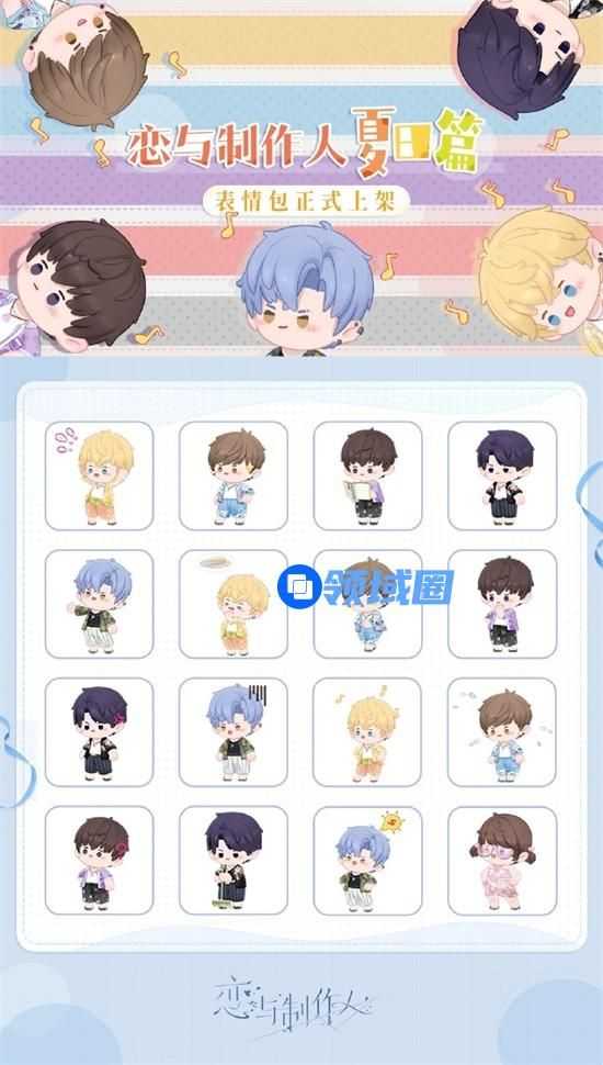 2.在顶部搜索框中输入“恋与制作人夏日篇”,即可添加表情专辑。
