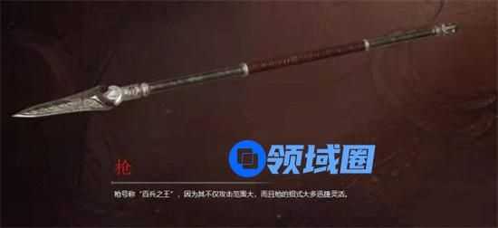 1、枪:枪号称“百兵之王”,因为这个款武器的攻击范围是非常大的,而且枪的招式都比较的迅捷灵活。