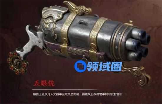 6、五眼铳:隐族工匠从凡人火器中汲取灵而制,因能从五根枪管中同时发射弹药