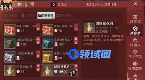 在新春特惠里面直接购买阴阳造化丹