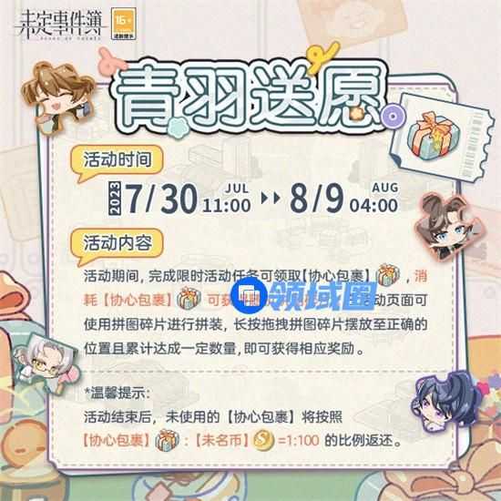 ※初代小贴士:活动结束后,未使用的【协心包裹】将按照【协心包裹】:【未名币】=1:100的比例返还