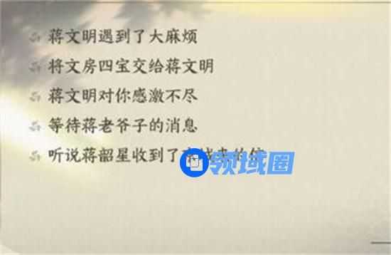 2、两个选项分别是给他物品或者给他钱,如果是选择给物品的话需要给【蒋文明】一个【文房四宝】。