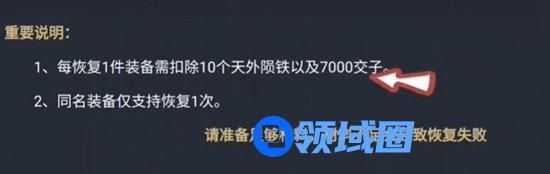 4、 消耗10个天外陨铁和7000交子,再选择想要找回的百炼装备即可。