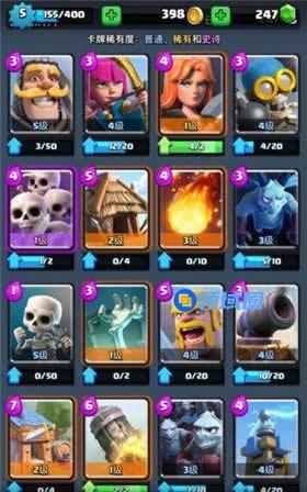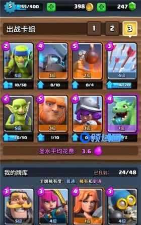 先说组卡思路吧,想法是围绕紫卡做文章,小编有龙和骷髅海。想了下,还是龙比较万金油,骷髅海用来进攻被箭雨解了血亏,防守也被箭雨解得快了也容易直接崩,于是选择了龙作为第一张卡。接下来,小编想的是如何针对对面,A4以内的卡,主要防好野猪、王子、女巫、龙这些卡感觉就还好。龙的话,小编的想法是弓箭手或者火枪,但是弓箭手不能单挑龙,于是选择火枪,针对王子,小编选了哥布林,对付女巫小编的想法是骑士或者小皮卡,其中骑士成效太慢,于是选择了小皮卡。就此,小编卡 组中有了龙、火枪、哥布林、小皮卡,看这些卡,会发现缺AOE,面对人海、房子这类的会比较头疼,于是小编增加了炸弹人,另外小编需要一个法术来解场,因为高血量怪(龙、王子、女巫)这些都已经有了针对性的卡牌,于是小编清场法术选了箭雨。好了,现在是龙、火枪、哥布林、小皮卡、炸弹人、箭雨,现在是考虑进攻 了,有了以上的牌,小编想法是需要胖子顶在前面,后面跟上防守存活下来的残血打进攻,于是加入了胖子,还差一张。当时想法是觉得一张哥布林可能不够用或者卡手什么的,加入长矛,还能吸引王子、皮卡,对付龙,跟着胖子进攻也不错。