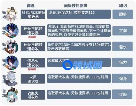 其中SP荒川、SP金鱼姬为可替代式神,换成其他水系式神更好,例如海忍(锁3技能)海坊主普攻会动画更快,同样的提供攻击面板也有所缩减,需要试炼式神高面板才可以替换,不追求极致通关速度的可以使用SSR/SP工具人。