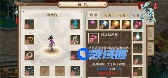 双倍点数用完了如何获得呢?除了系统赠送的点数之外,玩家还可以通过道具“超级仙风散”获得双倍点数(见下图)。