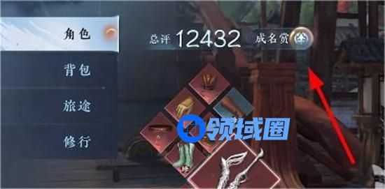 2、在角色页面总评分右侧,可以看到成名赏入口,点击下图箭头所指位置。