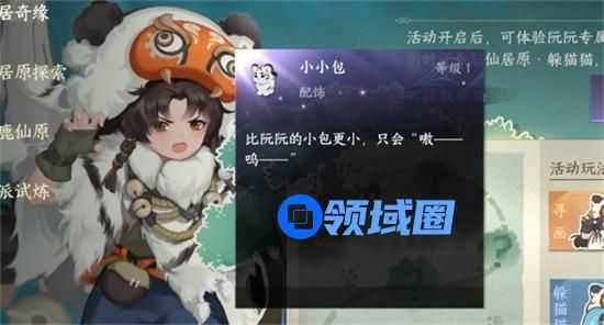 获取方法:小小包挂饰是新活动仙居原奖励,把躲猫猫这个活动完成就能获得