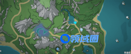 1、来到神像前面的湖泊,完成拯救画家的任务后会标记任务点,就是地下锚点的位置了。