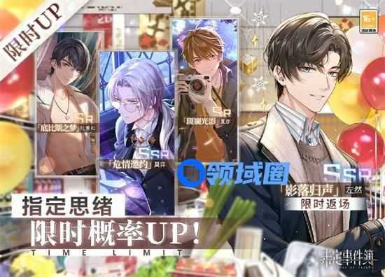 未定事件簿是一款非常好玩的恋爱向乙女游戏,玩家在游戏中选择不同的卡牌参与关卡挑战。左然影落归声是SSR卡牌,很多玩家在之前都没有进行兑换,在近期左然影落归声返场,很多玩家都不知道左然影落归声活动时间,下面小编就为大家带来左然影落归声活动一览,感兴趣的小伙伴就跟着小编往下看看吧。,