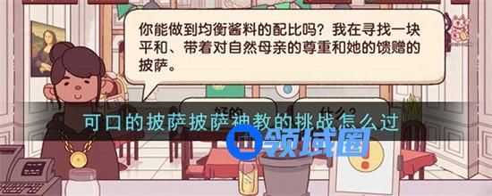 可口的披萨是一款非常好玩有趣的模拟经营游戏,玩家的任务就是根据客人的口味制作各种美味的披萨。披萨神教的挑战每一位玩家都会遇到,这个挑战还是有点难度,很多玩家还不知道要怎么通关。为此,今天小编整理了一份披萨神教挑战的详细攻略教程,帮助大家轻松通关,一起来接着往下看!,
