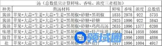 这里不给出各个熬汤材料的数据、熬煮次数关系、连携属性关系,为啥不给呢,因为没必要呀~乱七八糟的那么多不适合大多数玩家,直接给配方来得实在。