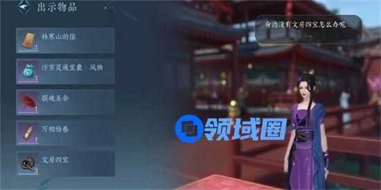 1、首先先来到甜水巷,到达之后找到牡丹并向其出示文房四宝;