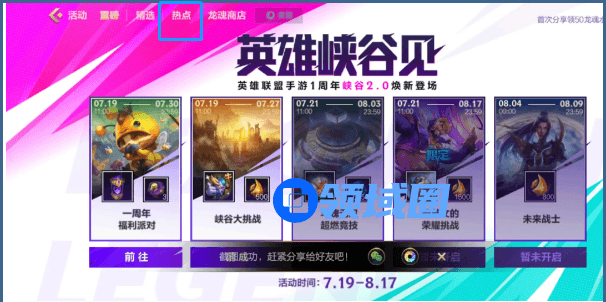 3、在热点界面,滑动左侧导航,在最底部可以找到峡谷战力报;