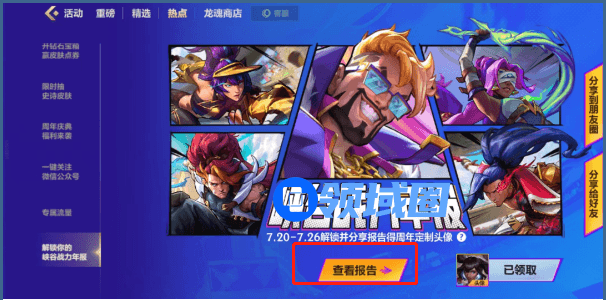 4、接着点击【查看报告】就可以进入个人峡谷战力报了;