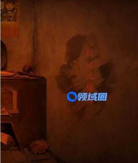 1、灶台左下角找到碎瓷片,用碎片刮右墙会出现“烟锁池塘柳”,这句诗偏旁对应五行,得到线索【火金水土木】