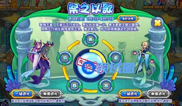 6、活动进度满一圈需要四天,可以在潞虹,嬉游任选其一进行超进化,完成其中之一活动将重置,依次反复进行下一次进化。