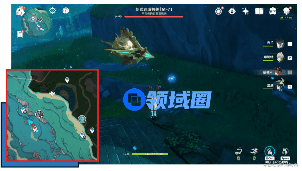 4、位置4:新式巡游机关「M-7」游到新式巡游机关「M-7」面前攻击一下,即可亮血条。(它不会主动攻击你)