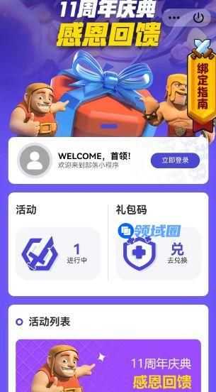 2、进入到周年庆活动页面以后,完成账号登录,即可参与部落冲突11周年庆活动。