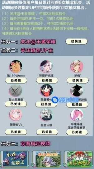 2、 每关注指定UP主一位,可得1次抽奖机会。