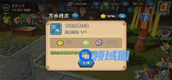 进入游戏主界面后,点击上方【铜币】图标后的加号,即可进入万永钱庄。在钱庄中玩家可以通过消耗元宝兑换铜钱,每天可以兑换30次。作为惊喜,每次兑换可能会获得更高倍数的铜钱。