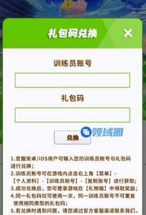 4、在礼包码兑换弹窗中,输入自己获得礼包兑换码,并绑定自己的【训练员账号】。