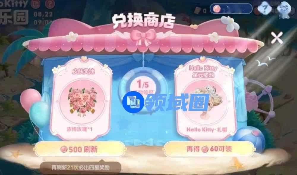 收集到乐园币可以用来刷新奖励,每消耗500乐园币刷新一次,刷到心仪的奖励可选择替换,其中奖励包含了二星、三星、四星和五星4个档位,其中3/4/5星为皮肤奖励,且在刷新次数达到20次和80次时可以必出勇者、史诗皮肤。另外玩家累计收集15000个乐园币即可得到小乔缤纷独角兽的Hello Kitty全套星元部件。