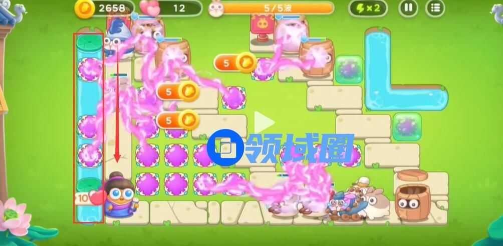 5、第五波时左边的怪会出现,在荷叶上多放置几个就能够进行消灭。