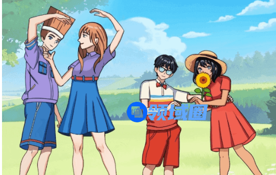 1、文字来找茬情侣拍照,需要拍出所有人满意的情侣照,首先移动蓝衣服男人和红衣服男人交换位置
