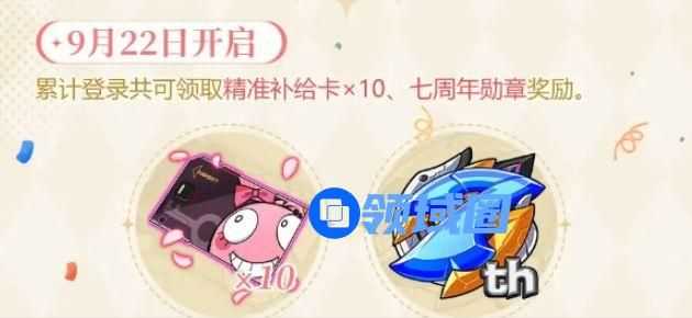 1.累计登陆一定的天数便可以获得精准补给卡*10、七周年勋章奖励;