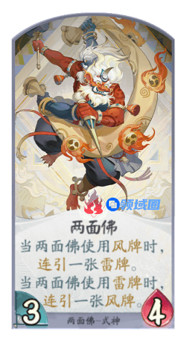 两面佛的风牌指的是非觉醒法术牌,雷牌指的是战斗牌。两面佛的风牌和雷牌在连引使用时,能够获得相应的增强效果。