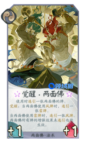 两面佛觉醒后,可以提升卡组的稳定性。即使在牌库中没有满足「连引」条件的牌时,风牌或雷牌也能够获得「连引使用」的增强效果。